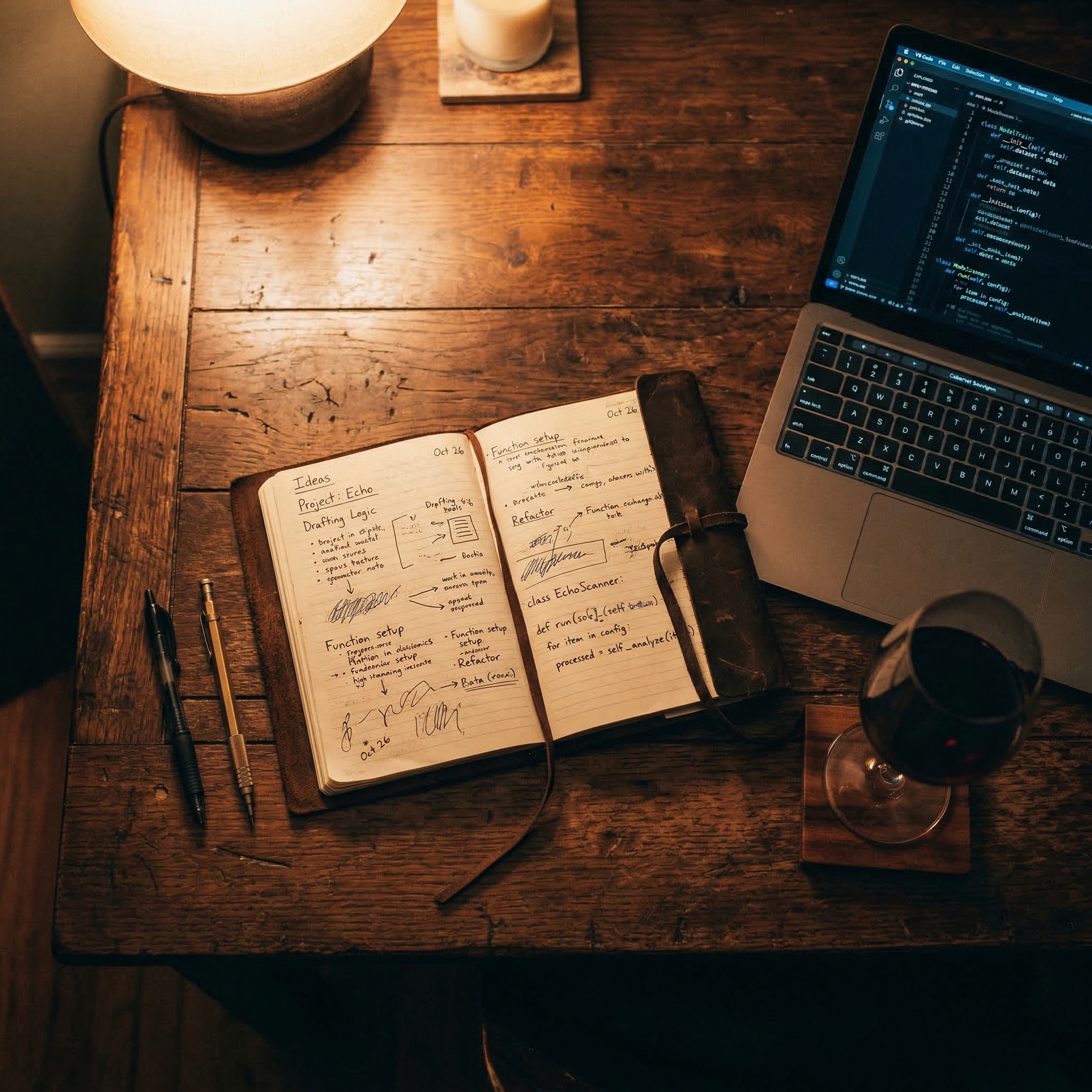 El nombre viene de ahí: del tinto. De sentarse a hablar en serio, sin rodeos, con algo real en la mano. Eso es lo que hacemos — productos reales para problemas reales.