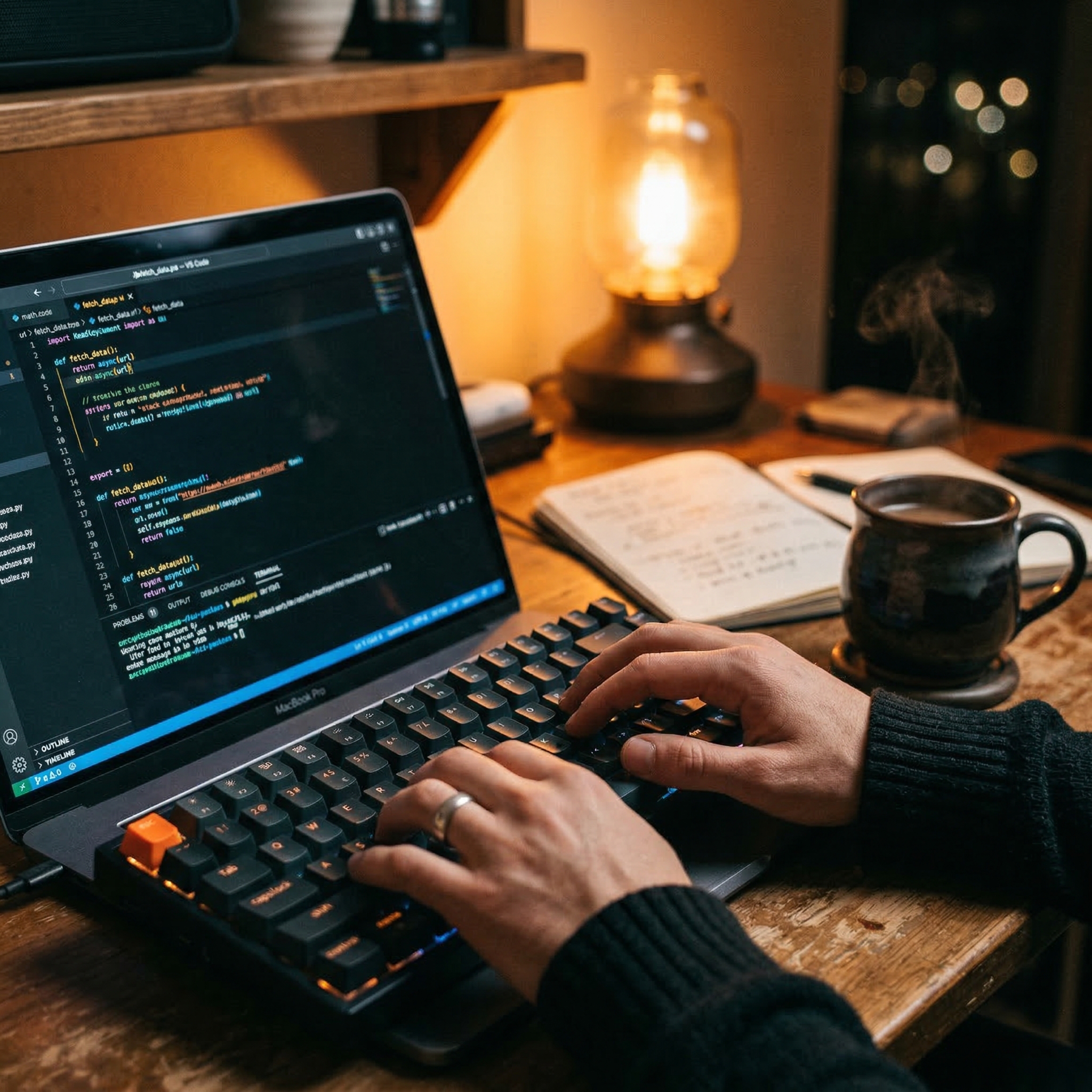 Caption: Hay código que se escribe a las 9am con café. Y hay código que se escribe a las 23:47 con un tinto al lado, porque algo hizo click y no podés parar.
